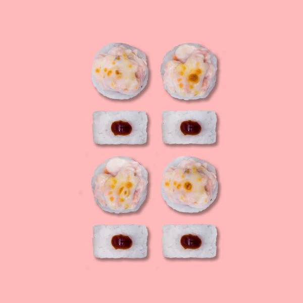 Рис, нори, сыр творожный, форель свежая, майонез, сыр моцарелла, соус унаги.
